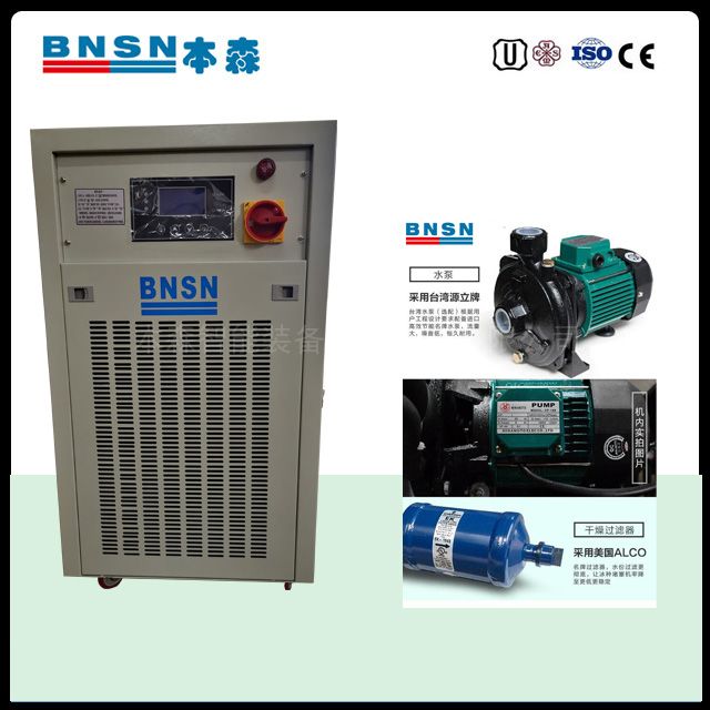 电器组件一律采用施耐德系列产品,故障率低,使用寿命长;微电脑控制系统,液晶显示,操作简单明了,给与客户*好的使用体验。 本森智能生产制冷设备,产品具备高低压、防冻、缺相、过载等多项保护措施,广泛应用于塑胶、化工、制药、机械、食品、镀膜、电镀的等诸多行业。